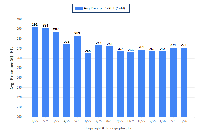 March 2026 Average Sold Price per Square Footage was Appreciating**