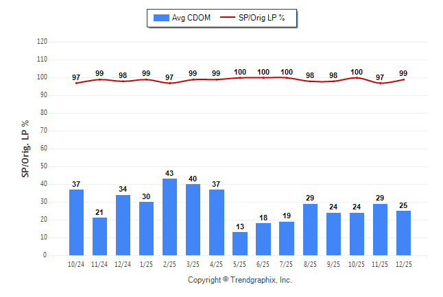December 2025 Average Continuous Days on Market trend Remains Steady and Sold/Original List Price Ratio Remains Steady**