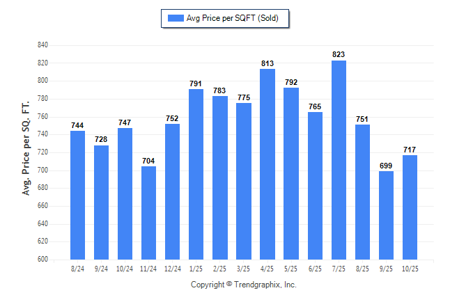 October 2025 Average Sold Price per Square Footage was Neutral**