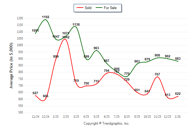 January 2026 Average For Sale Price was Neutral and Average Sold Price was Neutral**