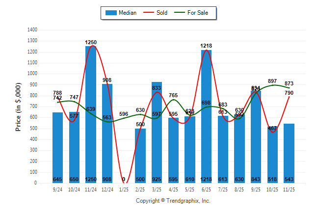 November 2025 Median Price was Neutral, Avg. For Sale Price was Neutral, and Avg. Sold Price was Neutral**