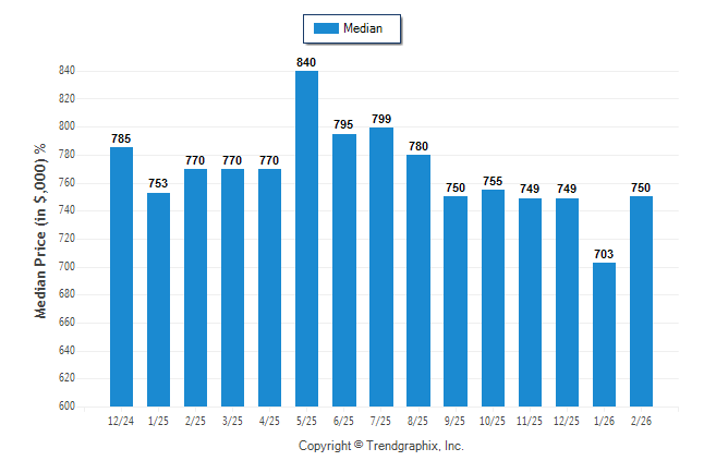 February 2026 Median Sold Price was Neutral**