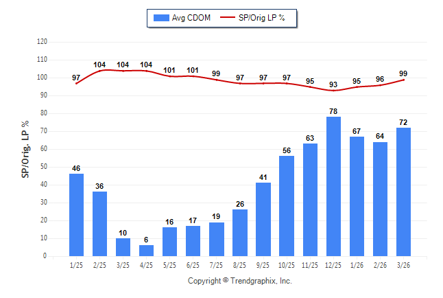 March 2026 Average Continuous Days on Market trend was Rising and Sold/Original List Price Ratio was Rising**