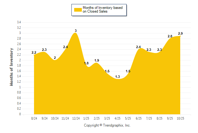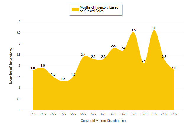 Curnt vs. Same Month 1 Yr Ago: Months of Inventory (Closed Sales)