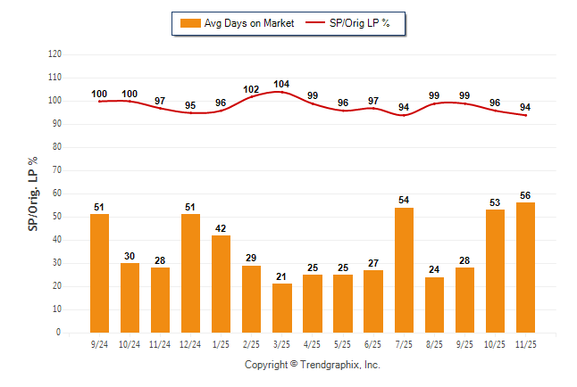 November 2025 Average Days on Market trend was Rising and Sold/Original List Price Ratio Remains Steady**