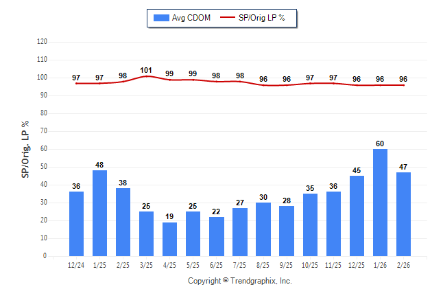 February 2026 Average Continuous Days on Market trend Remains Steady and Sold/Original List Price Ratio was Falling**