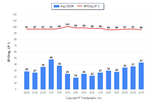 December 2025 Average Continuous Days on Market trend was Rising and Sold/Original List Price Ratio Remains Steady**
