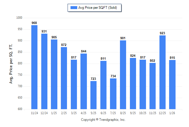January 2026 Average Sold Price per Square Footage was Neutral**