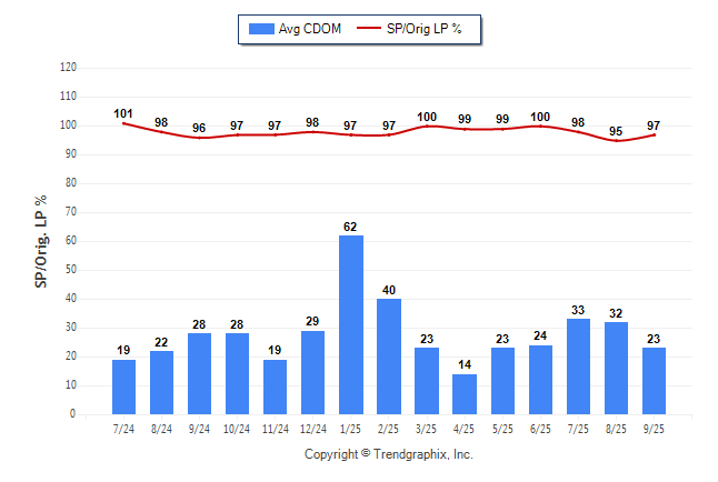September 2025 Average Continuous Days on Market trend Remains Steady and Sold/Original List Price Ratio Remains Steady**