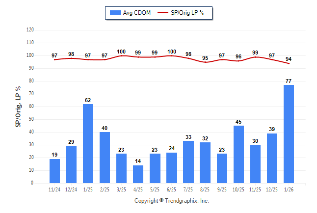 January 2026 Average Continuous Days on Market trend was Rising and Sold/Original List Price Ratio Remains Steady**