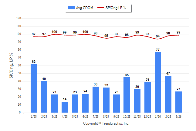 March 2026 Average Continuous Days on Market trend Remains Steady and Sold/Original List Price Ratio Remains Steady**