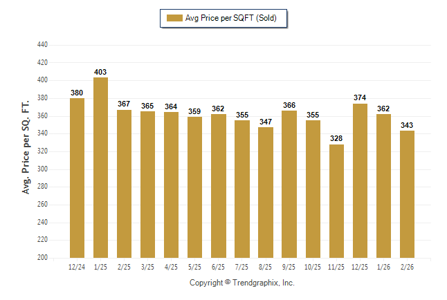 February 2026 Average Sold Price per Square Footage was Neutral**