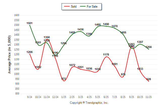 November 2025 Average For Sale Price was Depreciating and Average Sold Price was Depreciating**