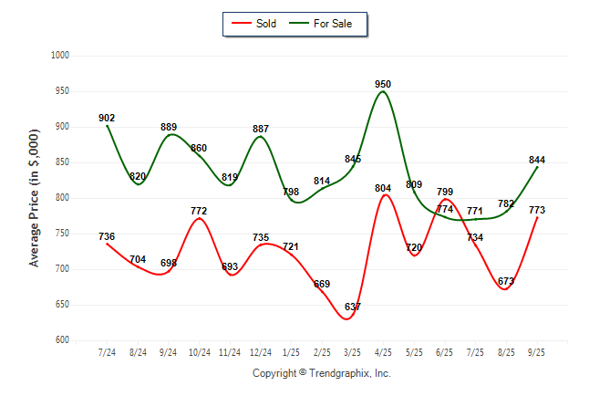 September 2025 Average For Sale Price was Neutral and Average Sold Price was Neutral**