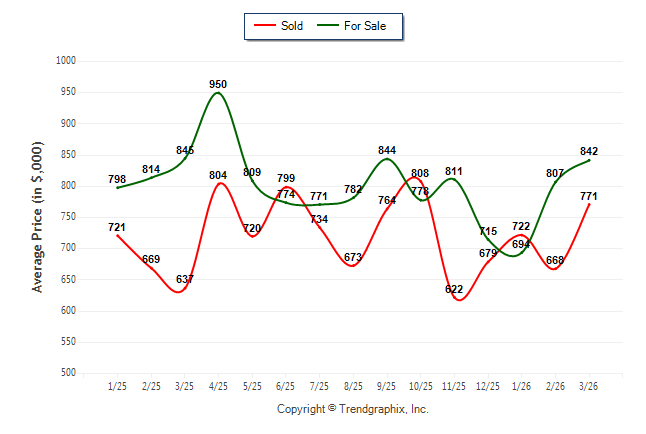 March 2026 Average For Sale Price was Appreciating and Average Sold Price was Appreciating**