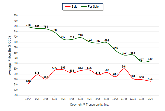 February 2026 Average For Sale Price was Neutral and Average Sold Price was Depreciating**