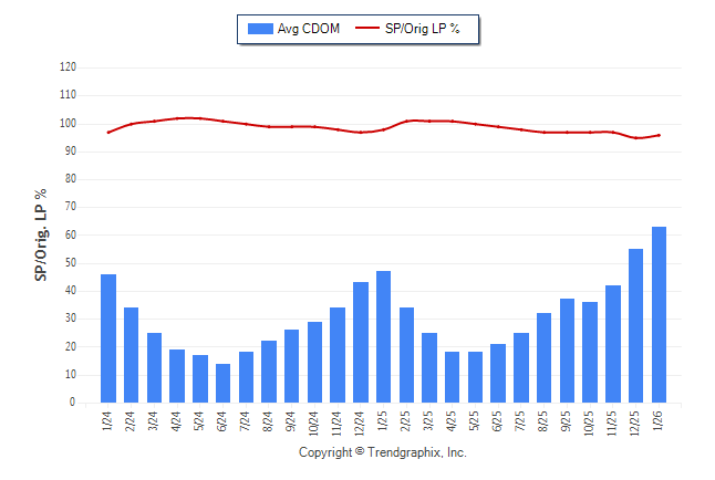 January 2026 Average Continuous Days on Market trend was Rising and Sold/Original List Price Ratio Remains Steady**