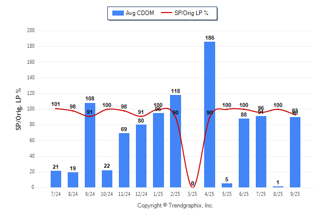September 2025 Average Continuous Days on Market trend Remains Steady and Sold/Original List Price Ratio was Falling**