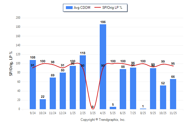November 2025 Average Continuous Days on Market trend Remains Steady and Sold/Original List Price Ratio Remains Steady**