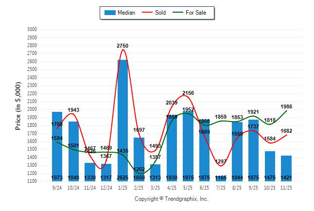November 2025 Median Price was Depreciating, Avg. For Sale Price was Appreciating, and Avg. Sold Price was Neutral**
