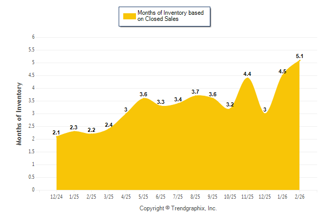 Curnt vs. Same Month 1 Yr Ago: Months of Inventory (Closed Sales)