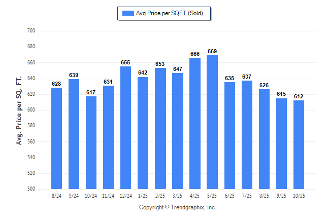 October 2025 Average Sold Price per Square Footage was Depreciating**