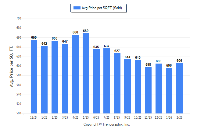 February 2026 Average Sold Price per Square Footage was Neutral**