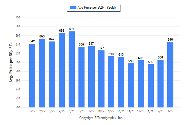 March 2026 Average Sold Price per Square Footage was Appreciating**