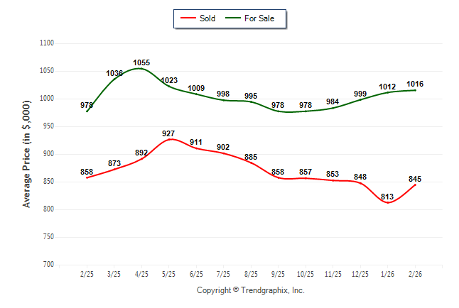 February 2026 Average For Sale Price was Appreciating and Average Sold Price was Neutral**