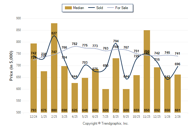 February 2026 Median Price was Neutral, Avg. For Sale Price was Depreciating, and Avg. Sold Price was Neutral**