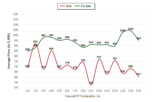 March 2026 Average For Sale Price was Neutral and Average Sold Price was Depreciating**