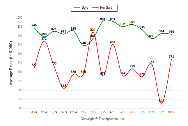 October 2025 Average For Sale Price was Neutral and Average Sold Price was Neutral**