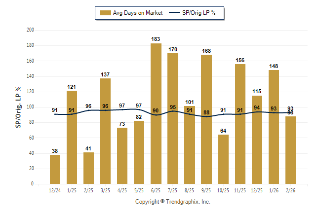 February 2026 Average Days on Market trend was Falling and Sold/Original List Price Ratio Remains Steady**