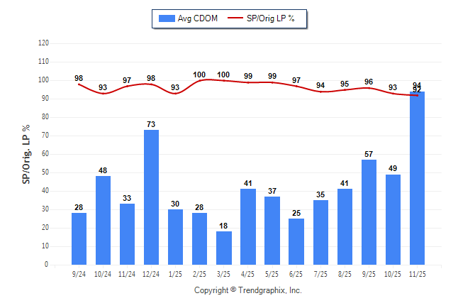 November 2025 Average Continuous Days on Market trend was Rising and Sold/Original List Price Ratio was Falling**
