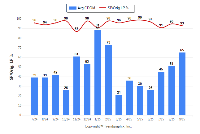 September 2025 Average Continuous Days on Market trend was Rising and Sold/Original List Price Ratio Remains Steady**