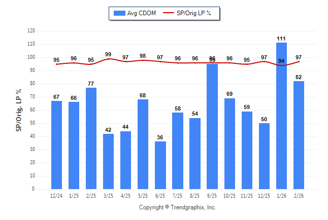 February 2026 Average Continuous Days on Market trend Remains Steady and Sold/Original List Price Ratio Remains Steady**