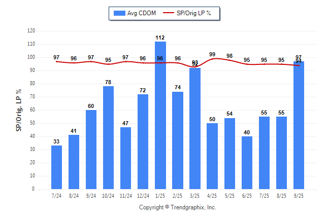 September 2025 Average Continuous Days on Market trend was Rising and Sold/Original List Price Ratio was Falling**