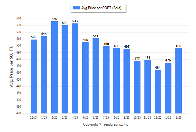 February 2026 Average Sold Price per Square Footage was Neutral**