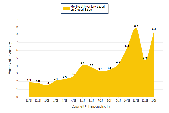 Curnt vs. Same Month 1 Yr Ago: Months of Inventory (Closed Sales)