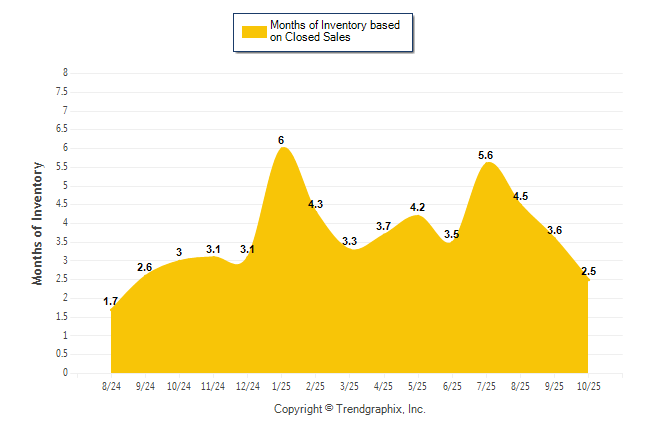 Curnt vs. Same Month 1 Yr Ago: Months of Inventory (Closed Sales)