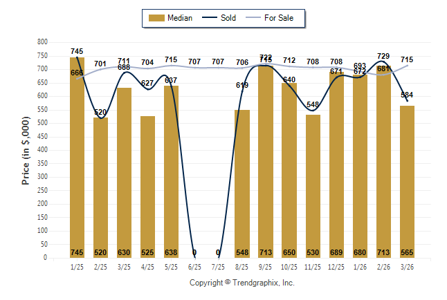 March 2026 Median Price was Depreciating, Avg. For Sale Price was Neutral, and Avg. Sold Price was Neutral**