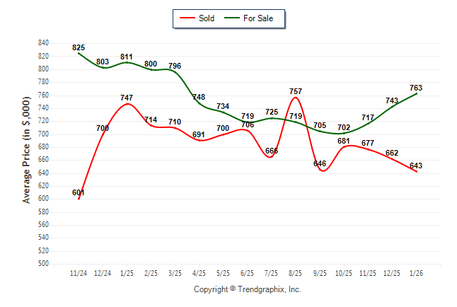 January 2026 Average For Sale Price was Appreciating and Average Sold Price was Depreciating**