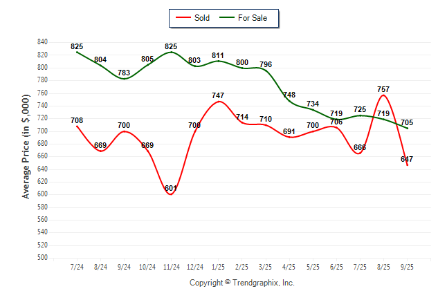 September 2025 Average For Sale Price was Depreciating and Average Sold Price was Depreciating**
