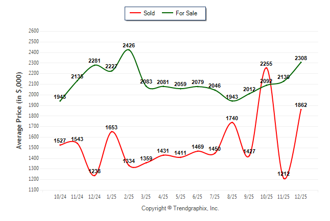December 2025 Average For Sale Price was Appreciating and Average Sold Price was Neutral**