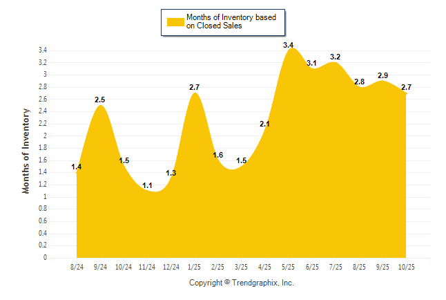 Curnt vs. Prev Month: Months of Inventory (Closed Sales) down-6.9%