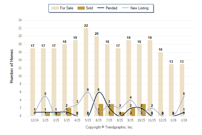 Curnt vs. Prev Month: For Sale 0% | New Listing N/A | Sold N/A | Pended N/A