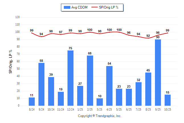 October 2025 Average Continuous Days on Market trend Remains Steady and Sold/Original List Price Ratio Remains Steady**