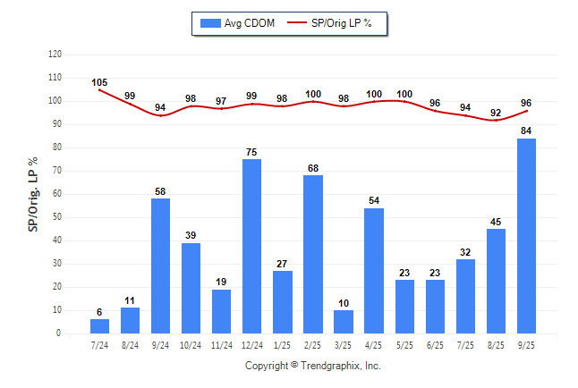 September 2025 Average Continuous Days on Market trend was Rising and Sold/Original List Price Ratio Remains Steady**