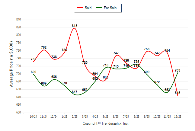 December 2025 Average For Sale Price was Neutral and Average Sold Price was Depreciating**