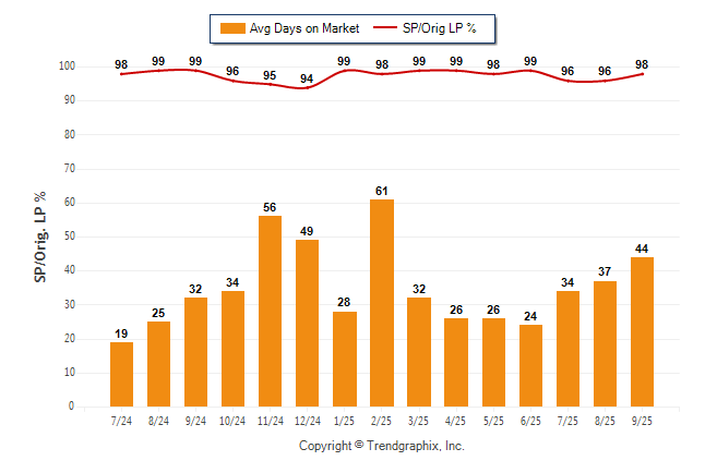 September 2025 Average Days on Market trend was Rising and Sold/Original List Price Ratio Remains Steady**